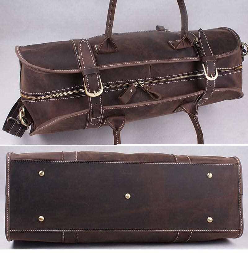 Carry your essentials in style with this black duffel bag and travel bag set, made from soft cowhide leather material. The travel bag features a spacious main compartment, convenient front pockets and an adjustable shoulder strap for comfort. It's small size makes it perfect for weekend trips, yet stylish enough to take to the office! Features include a top handle, convenient outside pockets, back sleeve pocket and larger bottom pocket for shoes. This duffel bag will be a great complement to any outfit!