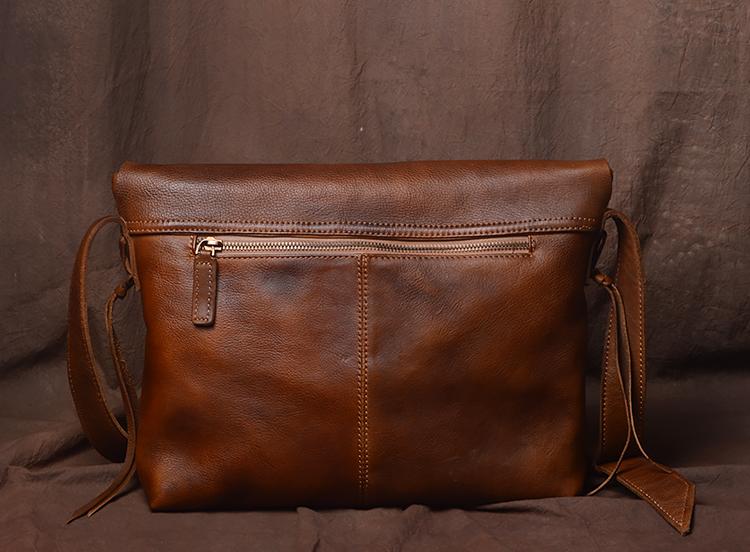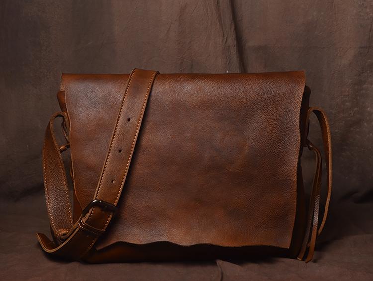 This vintage messenger bag is made of high-quality genuine cow leather, stylish design. Interior with two large compartments and one end zipper pocket, has enough space for your book, magazine, ipad or travel essentials. The wallet phone purse flap are equipped with magnets completely be sewn by hands, have a sense of quality serious, supple hand feeling luxury leather.Briefcase slim figure thick bottom of the carrying capacity, can protect your stuff organised and tidy.