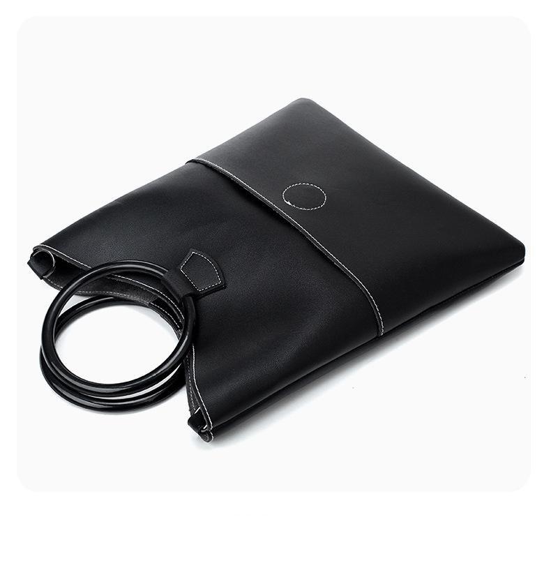 Bags are one of the often-overlooked, but extremely useful accessories in our daily lives. When shopping for bags, make sure to choose the one that best suits your needs, whether it's for you or a loved one. Make the right style statement with this simple yet luxurious geometric leather handbag! This minimalistic design creates a unique and noticeable feature to your outfit. It's made of soft and luxurious cow hide leather and features dual handles, a sturdy top handle, and an adjustable long shoulder strap for your convenience.